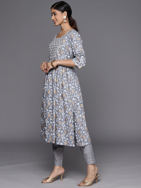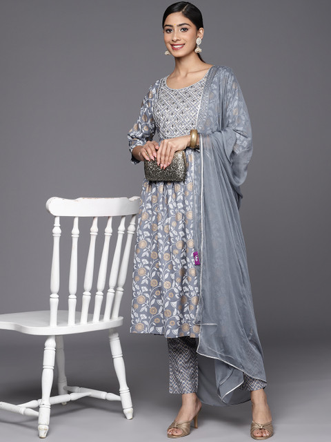 Grey yoke design Kurta with Trousers with dupatta