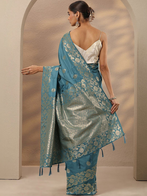 The blouse worn by the model might be for modelling purpose only. Check the image of the blouse piece to understand how the actual blouse piece looks like.