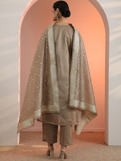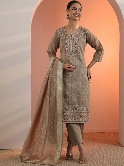 Libas Women Ethnic Motifs Embroidered Regular Thread Work Kurta with Trousers & With Dupatta