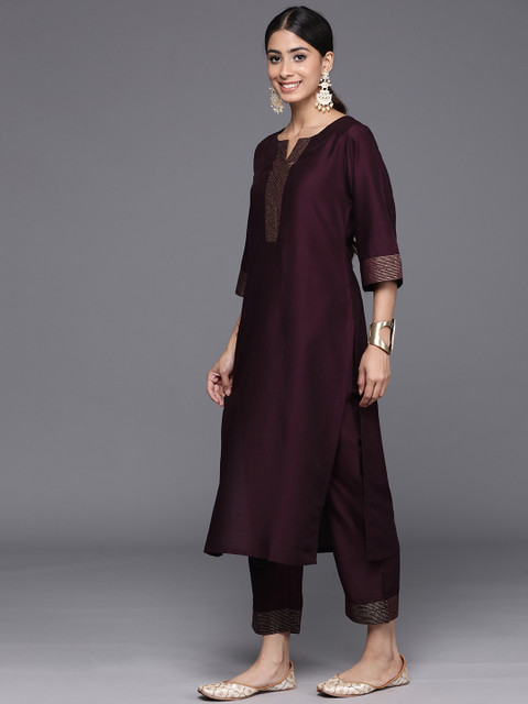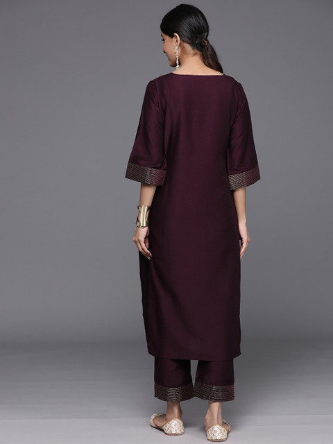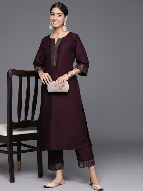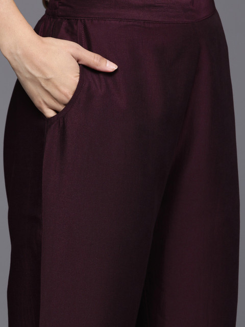 Burgundy yoke design Kurta with Trousers