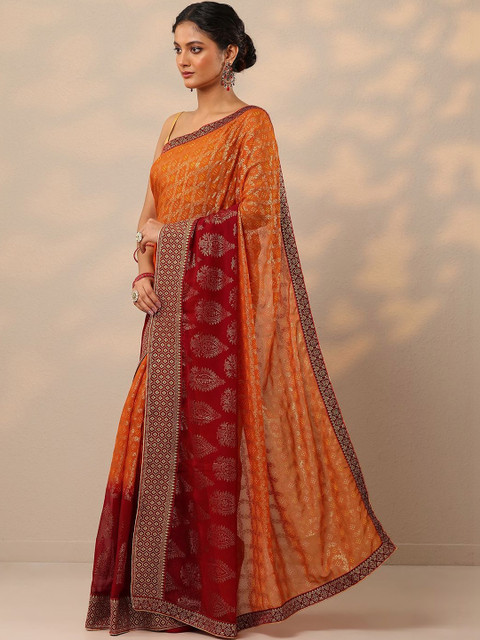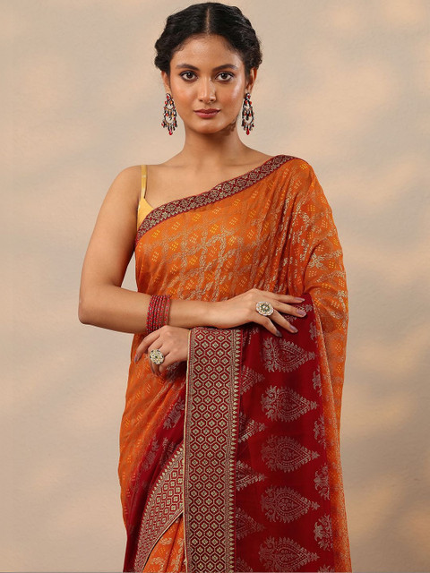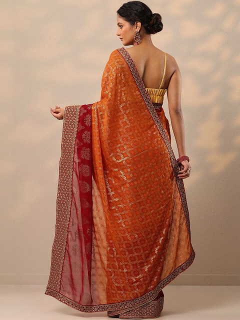 The blouse worn by the model might be for modelling purpose only. Check the image of the blouse piece to understand how the actual blouse piece looks like.