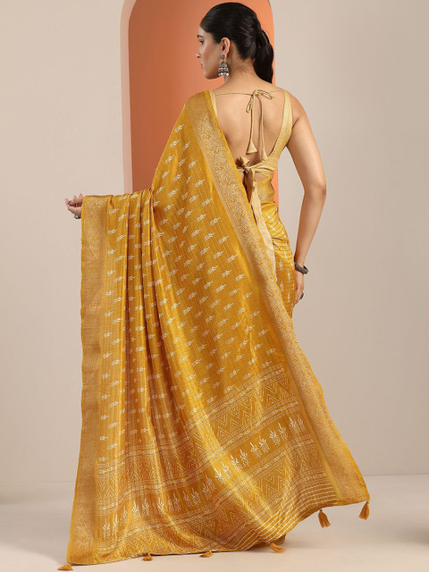 The saree comes with an unstitched blouse piece