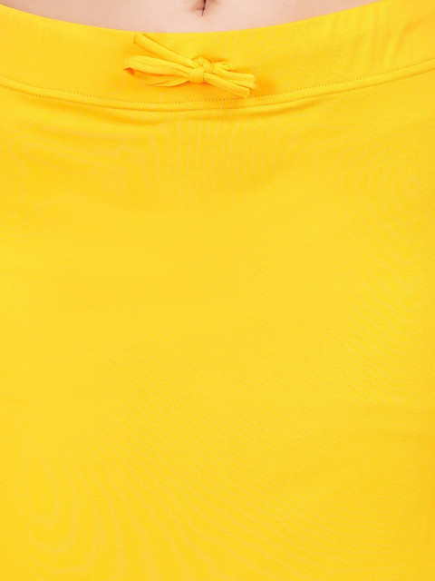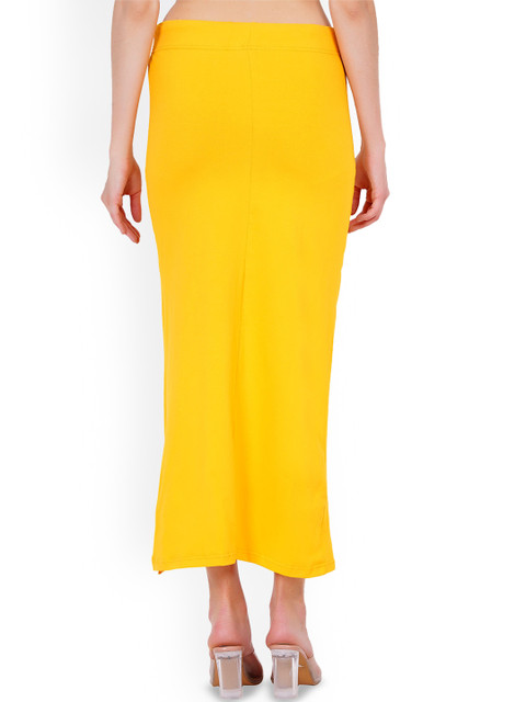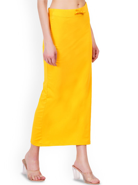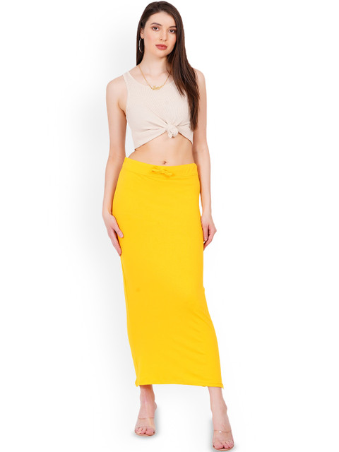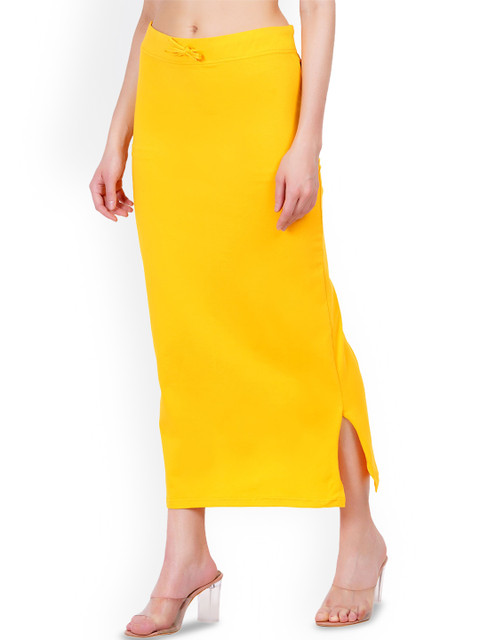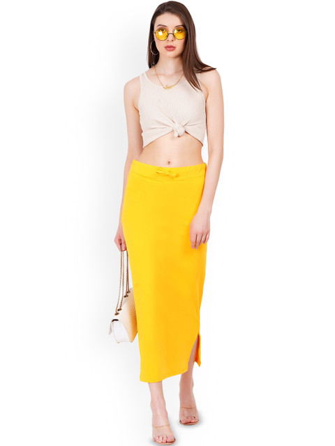 Yellow solid stretchable saree shapewear, has an elasticated waistband with drawstring closure and a side slit