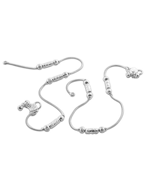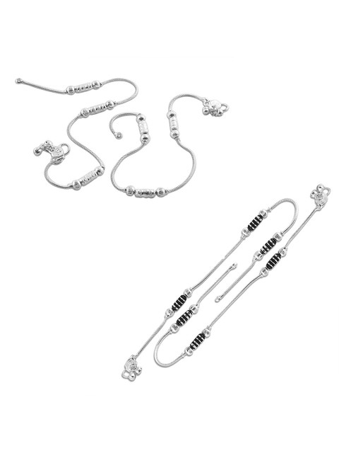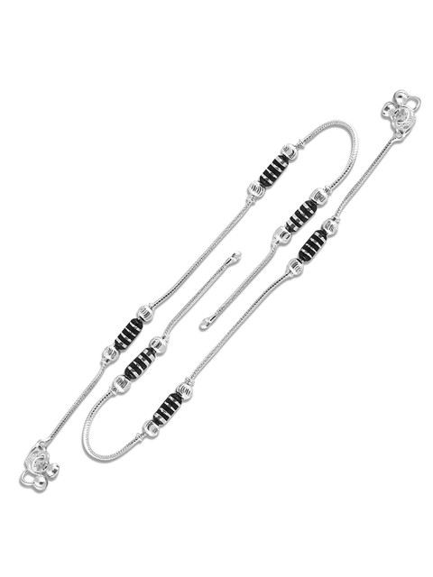 Set of 2 Silver-plated, has black artificial beaded anklets, has s-hook closure