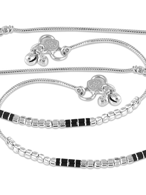 Silver-plated and black anklets