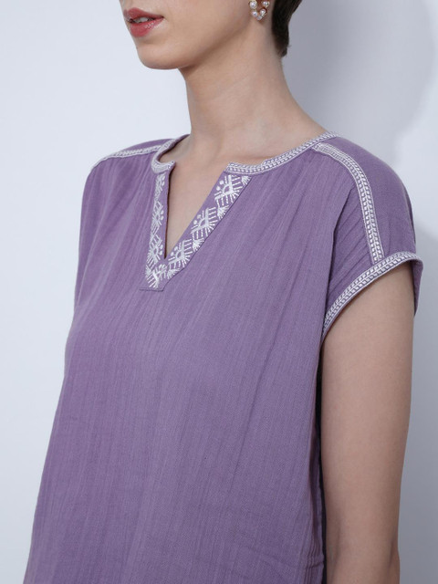 1 review for LIMEROAD Cotton Lavender Solid V neck Cap Sleeve Top