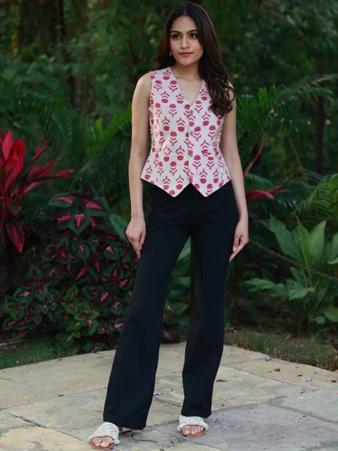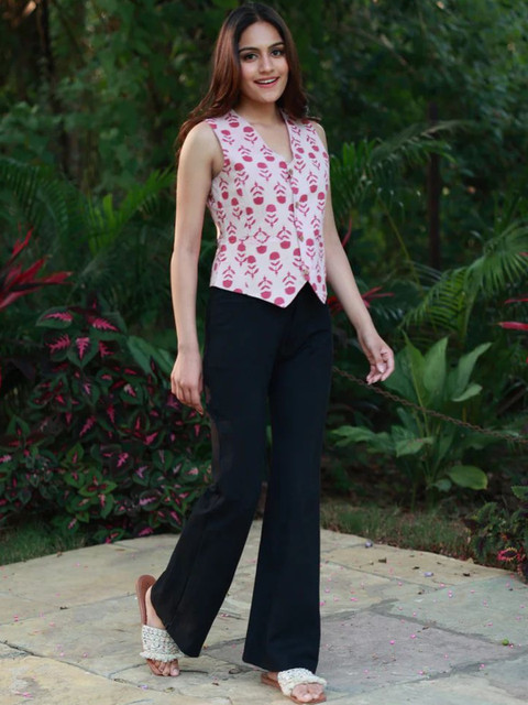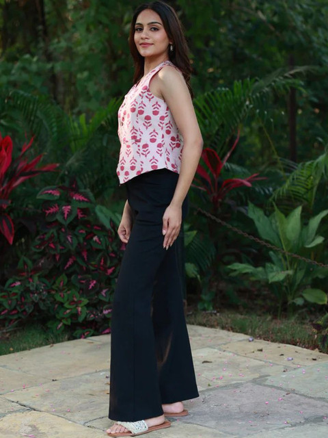 Pair this floral strappy top with ripped denim shorts and sliders for a beach-ready vibe. For a chic brunch look, team it with high-waist trousers and a sling bag. Add statement earrings to elevate the style effortlessly.