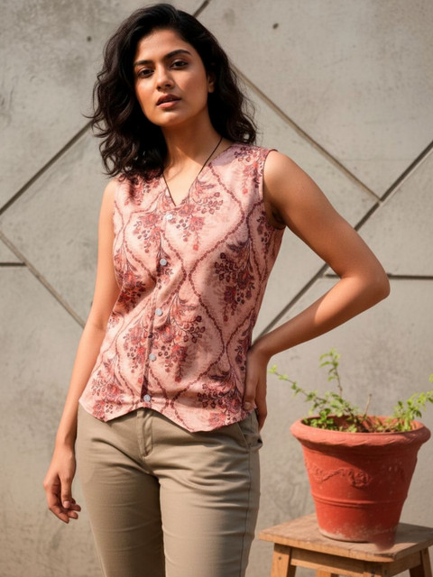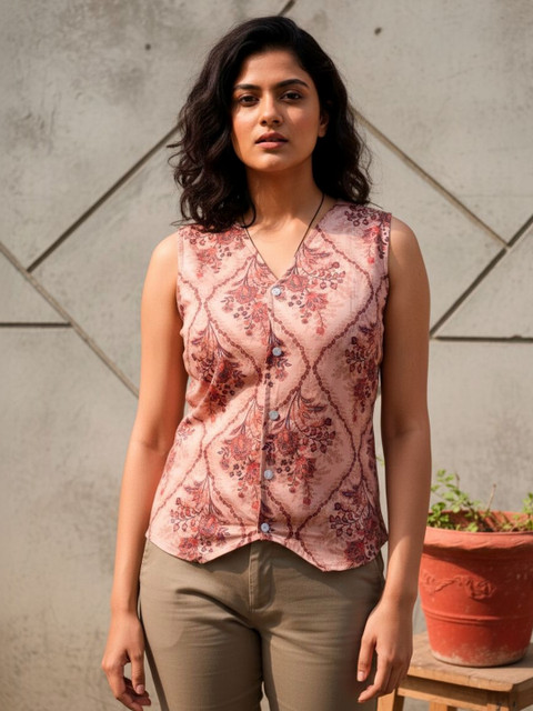 Stylish ethnic printed waistcoat design Elegant V-neck with front button closure Comfortable sleeveless design Perfect for casual, festive & office wear Easy to pair with jeans, kurtis, skirts & palazzos Trendy fusion ethnic fashion
