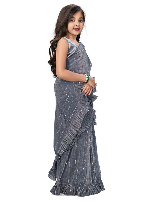 The blouse worn by the model might be for modelling purpose only. Check the image of the blouse piece to understand how the actual blouse piece looks like.