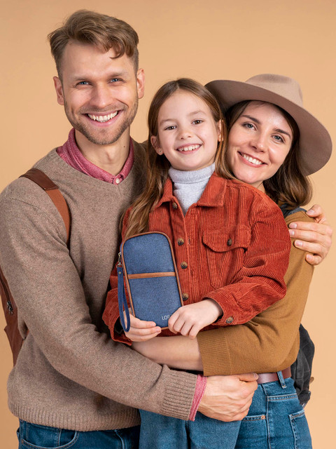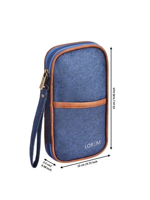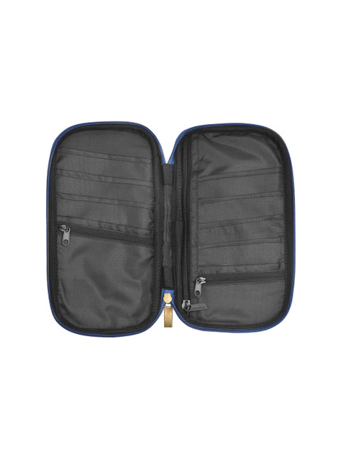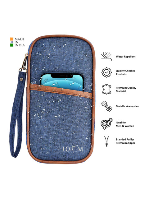 Blue & tan travel document organizer comes with detachable wrist band (20cm),