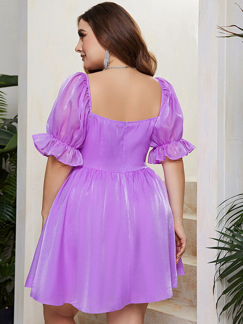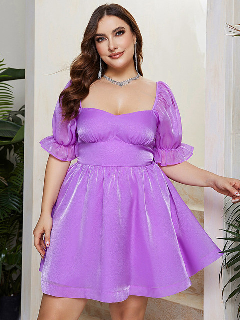 • Plus size purple solid fit & flare dress