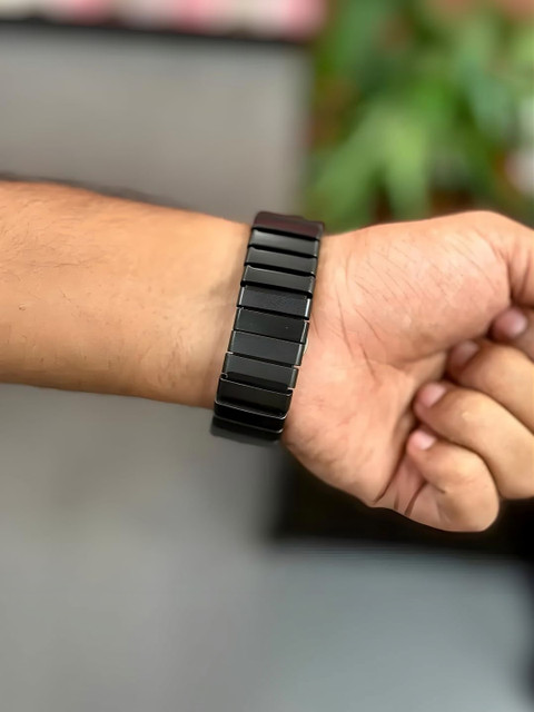 Strap Style: black, bracelet style, metal strap with a foldover and butterfly