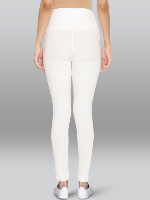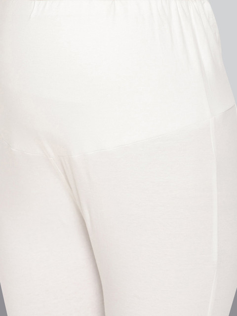 White solid ankle-length maternity leggings, has an elasticated waistband and slip-on closure