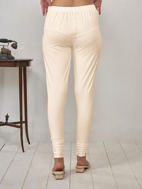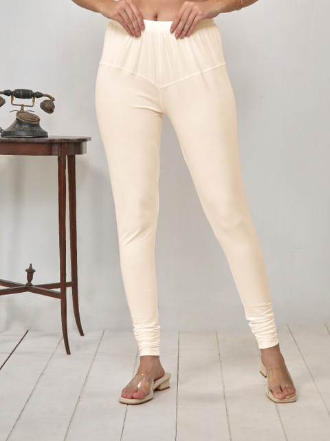 Beige solid regular-fit Churidar length leggings, has an elasticated waistband, and slip-on closure