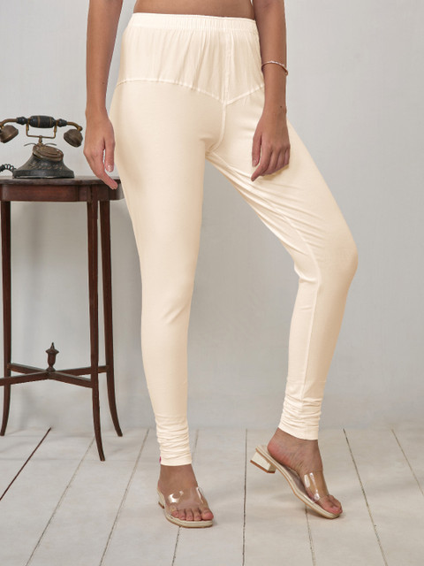 LYRA Women Beige Solid Churidar Length Leggings