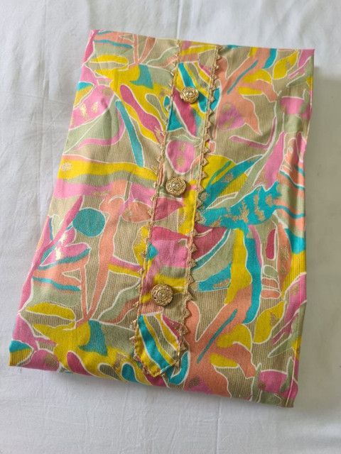 Blue, pink and yellow floral printed kurta fabric, has gotta patti details