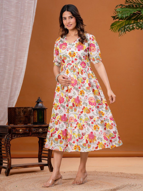3 reviews for mad fury Floral Print Puff Sleeve Maternity Dress
