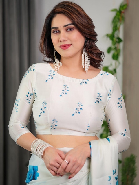 The blouse worn by the model might be for modelling purpose only. Check the image of the blouse piece to understand how the actual blouse piece looks like.