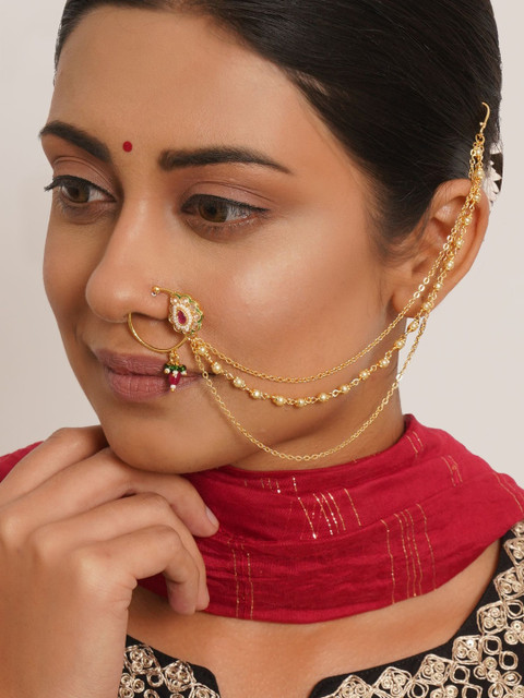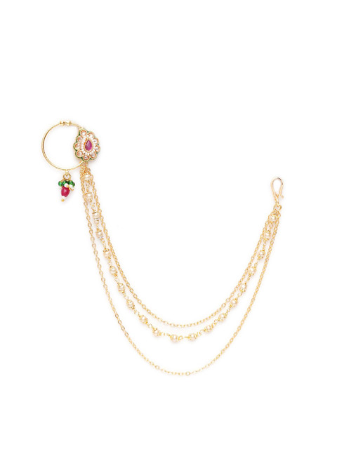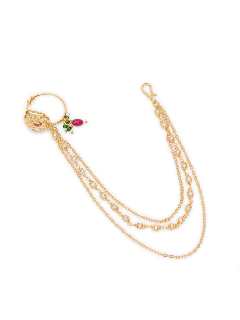 Gold-plated artificial stones and beads Studded ring clip-on closure