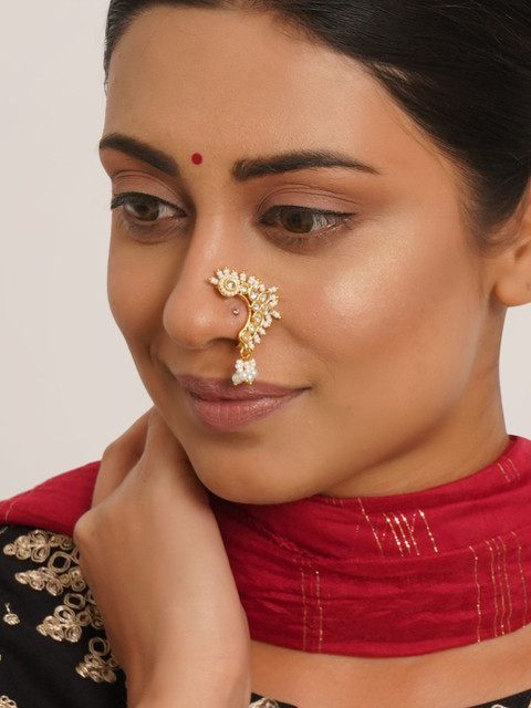 Gold-plated artificial stones and beads Studded septum clip-on closure