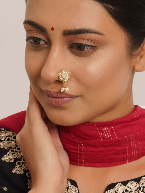 Gold-plated artificial stones and beads Studded stud clip-on closure