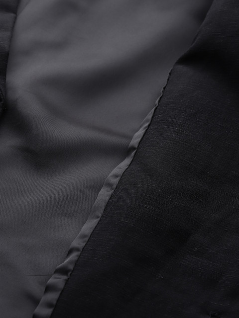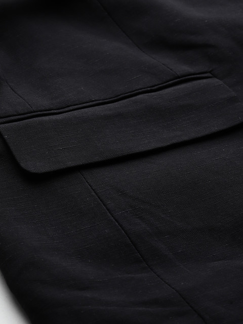 Black solid single-breasted blazer, has a notched lapel, long sleeves, button closure, 2 patch pockets, single vented hem