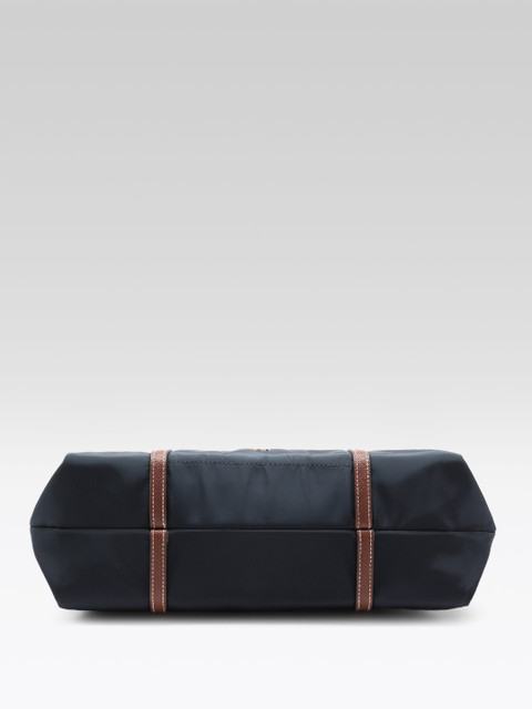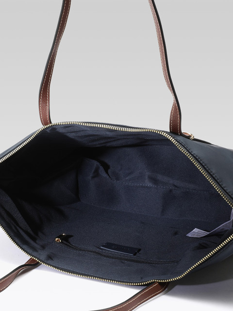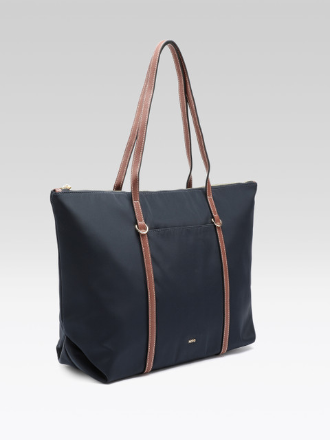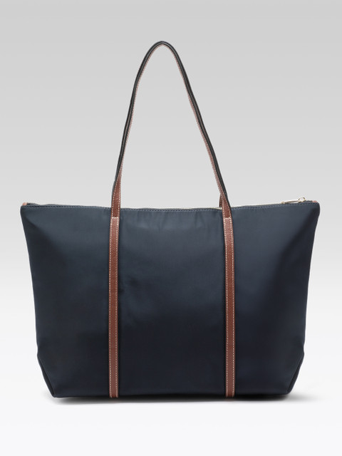 Navy blue solid shoulder bag, 1 main compartment, has a zip closure, 1 external pocket, 1 inner pocket