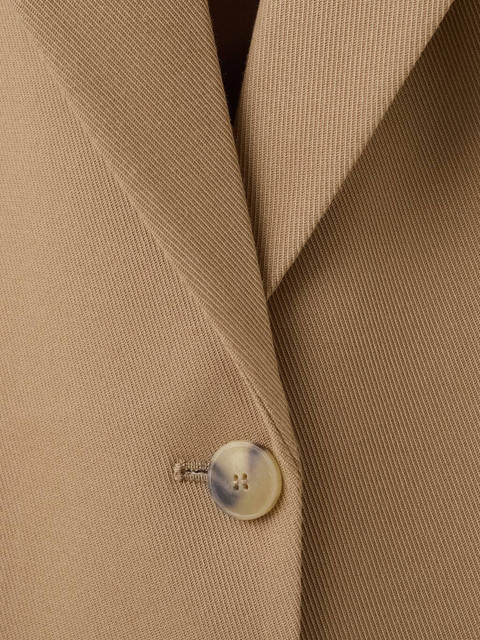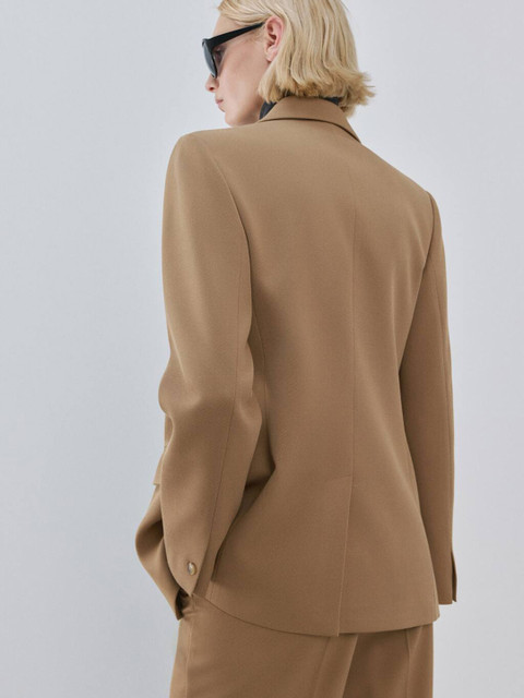 Brown solid single-breasted blazer, notched lapel collar, long regular sleeves, button closure, 3 pockets and ventless