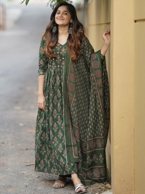 Green printed Kurta with Trousers with dupatta