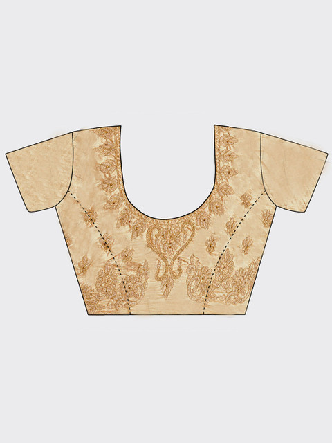 Red and gold-toned embroidered unstitched blouse, three-quarter sleeves