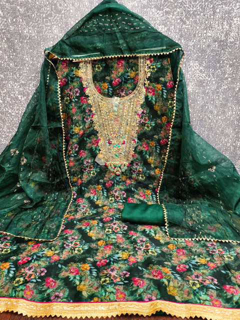 Green and Green Printed Unstitched Dress Material