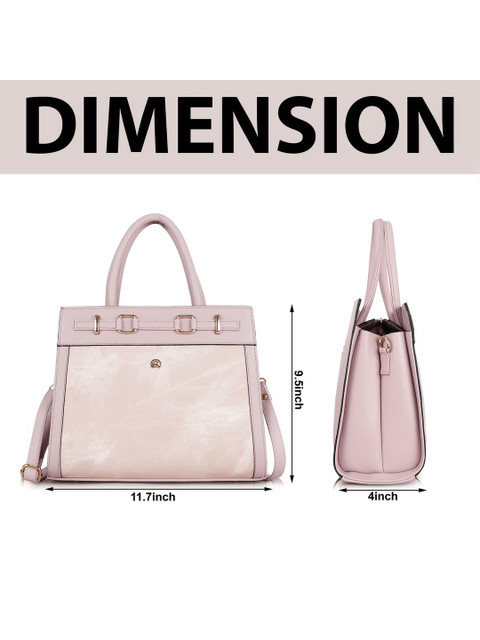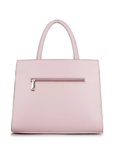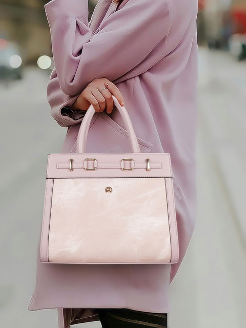 Pink colourblocked handheld bag 2 main compartments, has a zip closure, 1 external pocket, 3 inner pockets