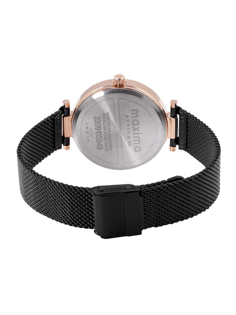 Strap Style: black, bracelet style, stainless steel strap with a foldover closure