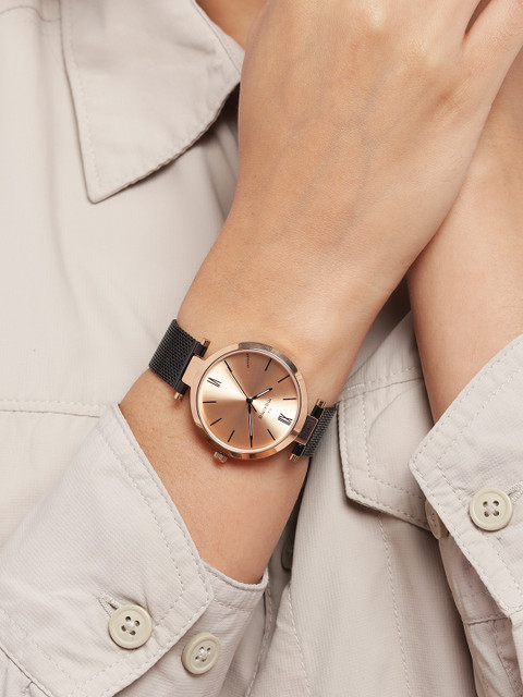Dial style: rose gold-toned solid round brass dial
