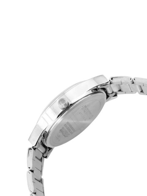 Strap Style: silver toned, bracelet style, stainless steel strap with a foldover closure