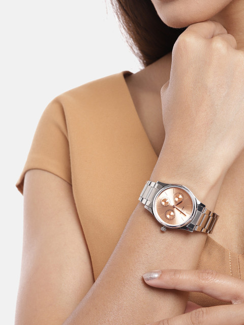 Dial style: rose gold-toned solid round brass dial
