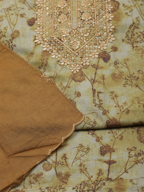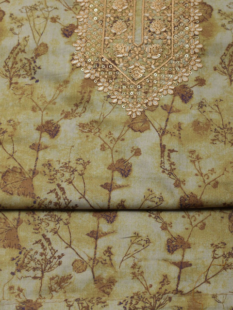 Brown and gold-toned embroidered kurta fabric, has thread work details