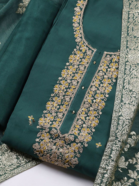 Green embroidered unstitched dress material