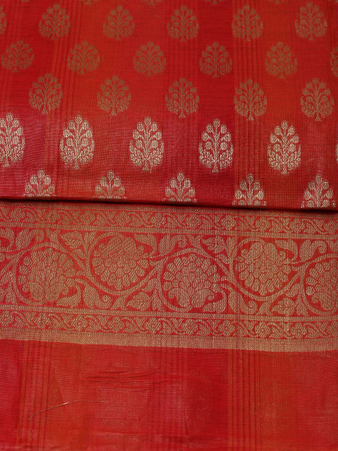 Rust and gold-toned ethnic motifs woven design unstitched dress material
