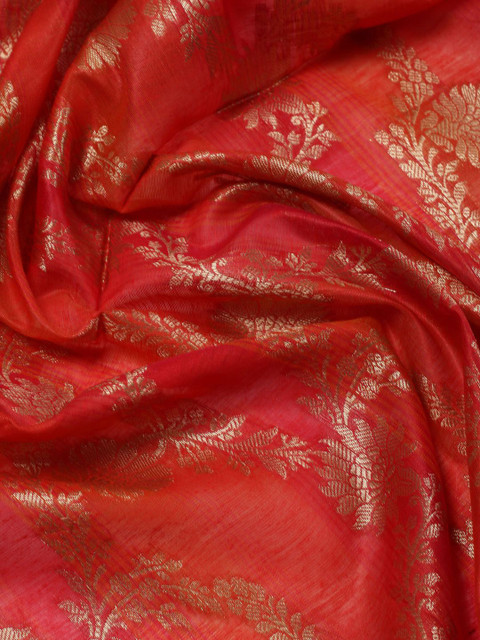 Rust and gold-toned ethnic motifs woven design zari kurta fabric
