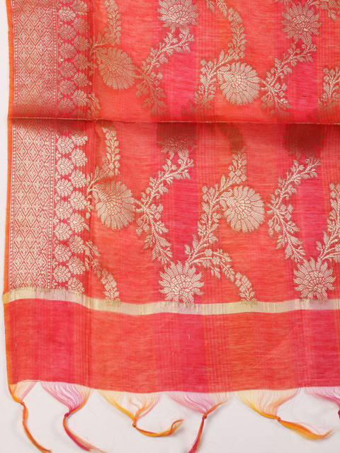 Rust and gold-toned ethnic motifs woven design zari dupatta, has tassels border