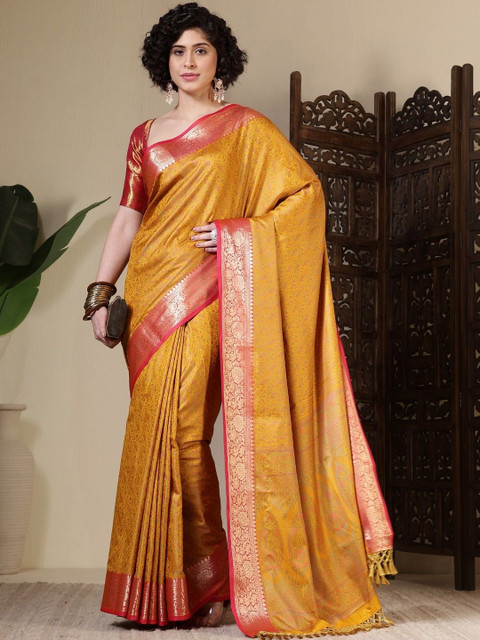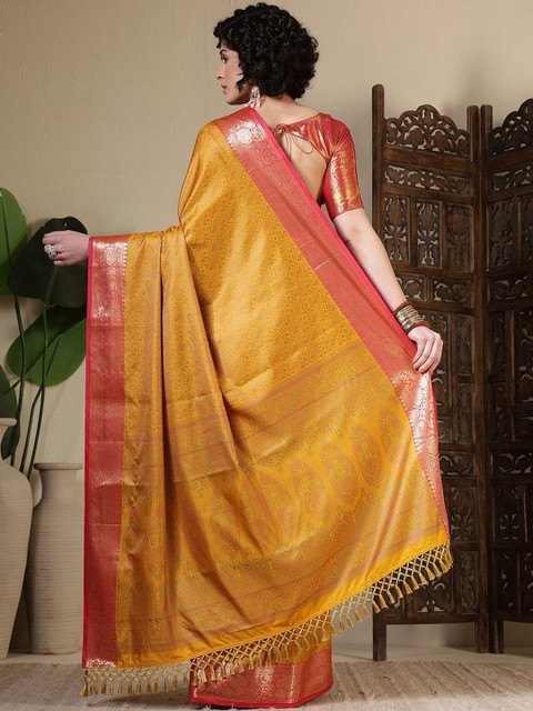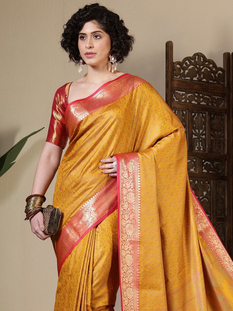 • Ethnic Motifs Woven Design saree with Zari Border border