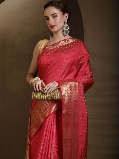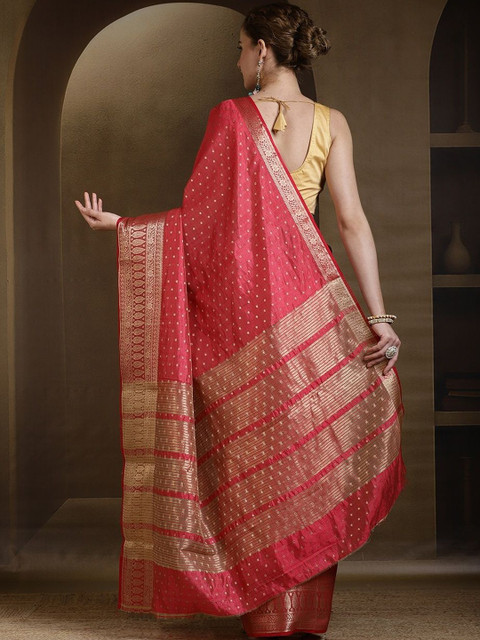 - Ethnic motifs woven design saree with woven design border border