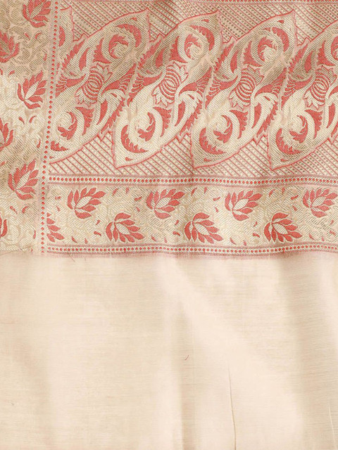 Beige, red and gold-toned woven design dupatta, has woven design border