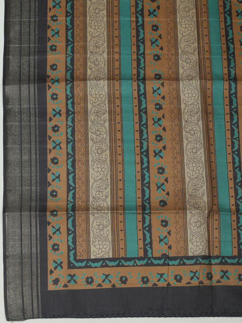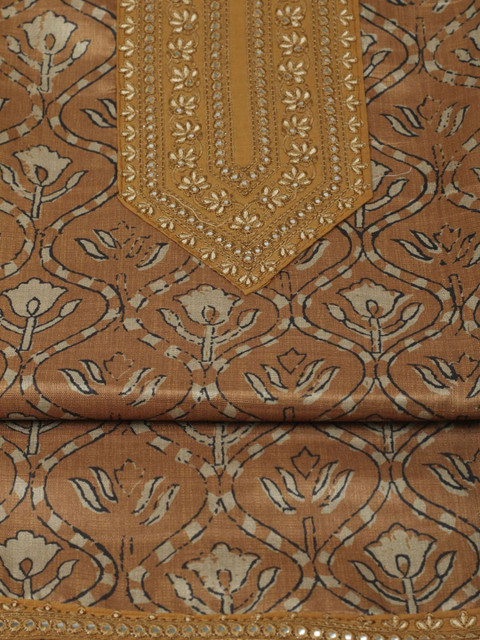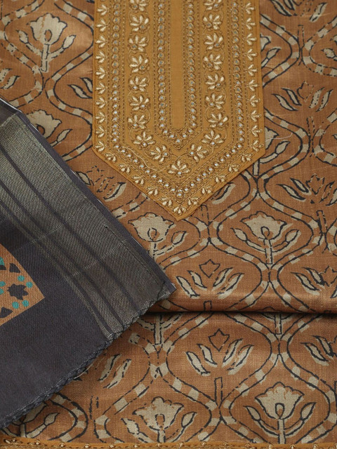 Brown printed unstitched dress material
