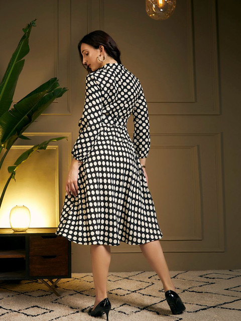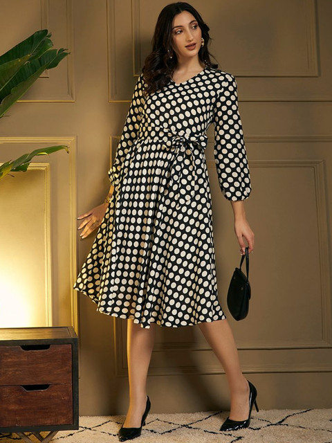 Layer this belted midi dress with a fitted turtleneck underneath or a cropped jacket on top, add tights and knee-high boots, and finish with a chic scarf for a polished winter look.