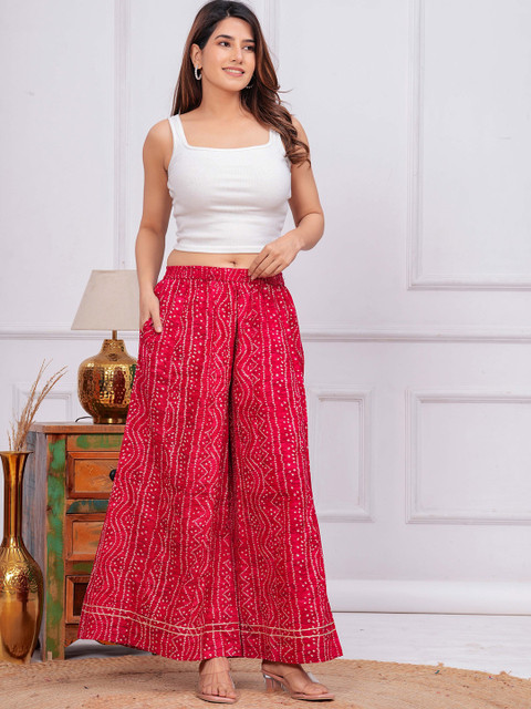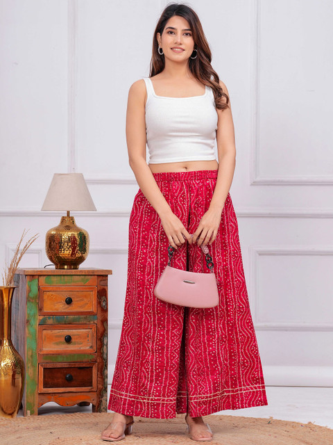 - Pink and white woven palazzos