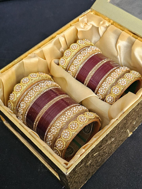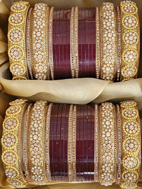 I really like this maroon color chuda set. Size and fit is good. Material and quality is nice. Comfortable to wear.