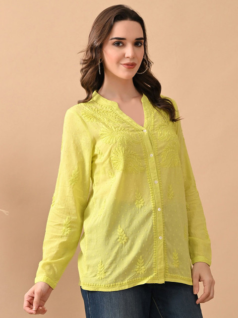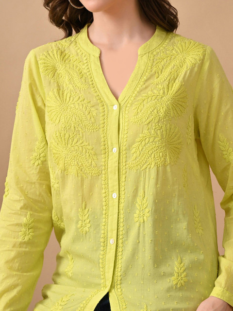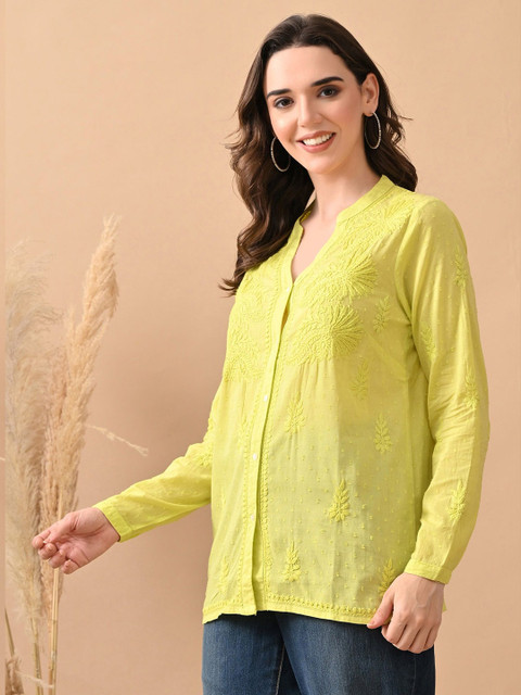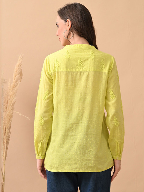 - Mandarin collar, long, regular sleeves