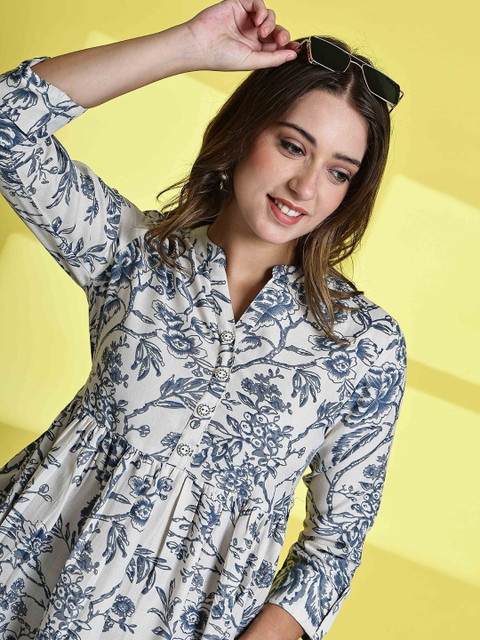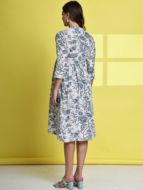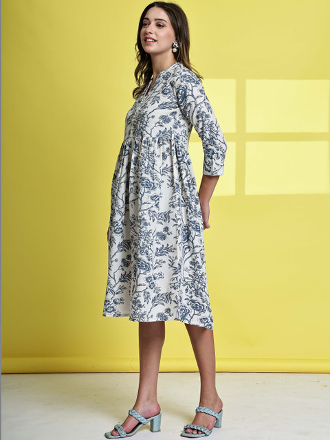 Dress Fabric : Cotton, Dress Color : Off White & Blue